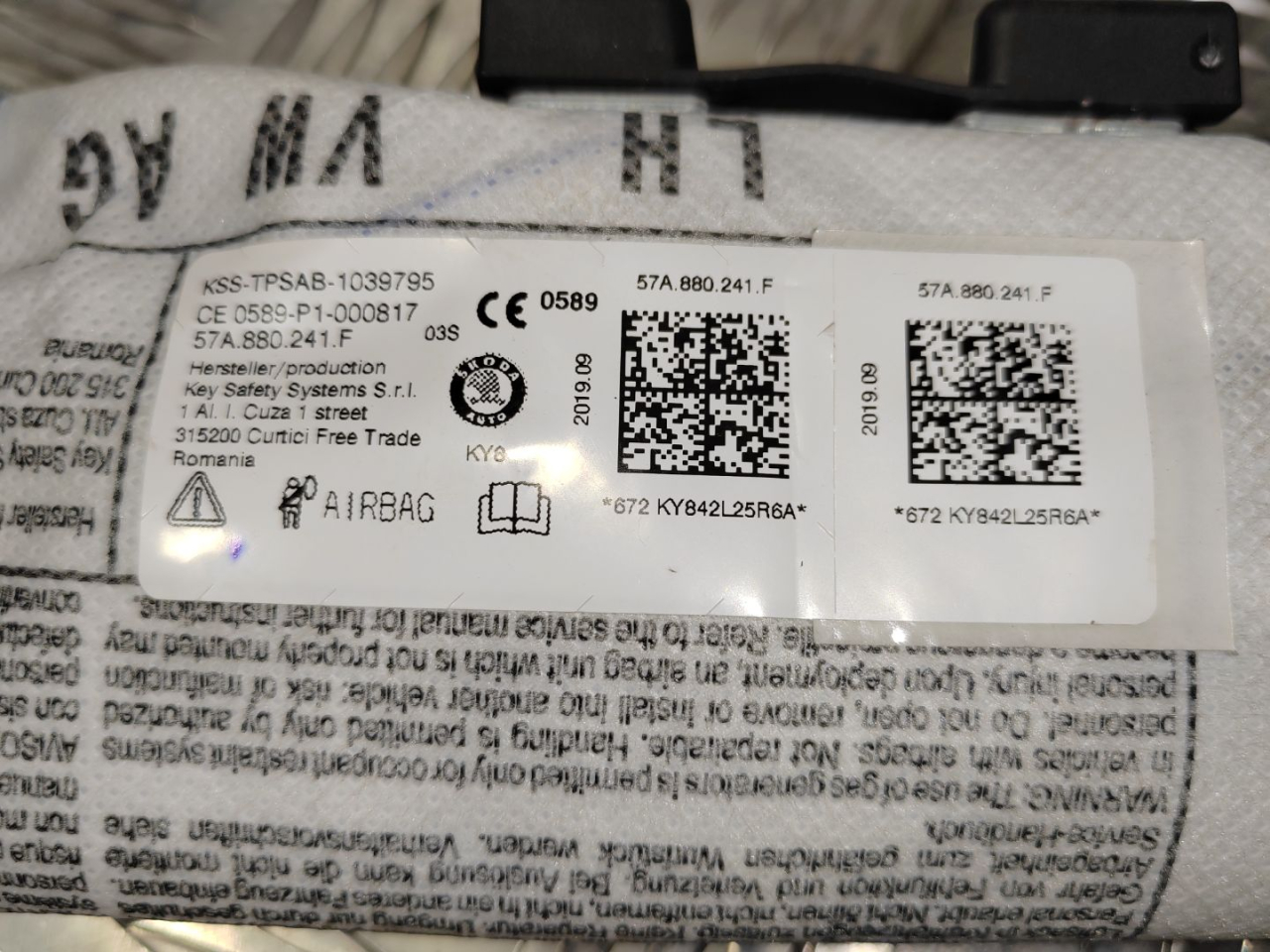 Подушка безопасности сиденья Skoda Karoq 2019